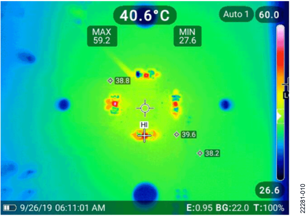 この加熱ブロックによって、設計上のシステムの合計消費電力が大幅に上昇することに留意してください。抵抗値を下げると生成される熱量は増加しますが、より多くの電源電流が必要になります。バッテリ電源システムの場合はバッテリー寿命が短くなる原因となるため、設計時にはこの点も考慮する必要があります。