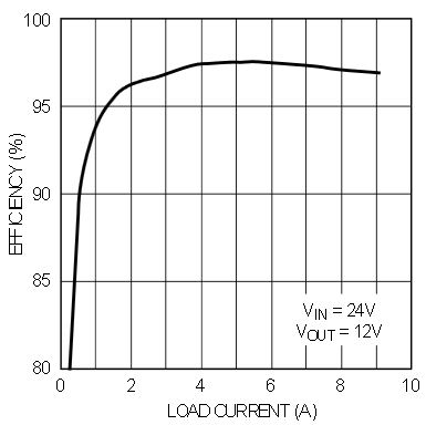 Figure 2 shows that 97% efficiency is achieved over a wide range of load current. The application uses the FCB pin to disable Burst Mode operation and force continuous, synchronous operation down to no load. Enabling Burst Mode would keep the efficiency above 90% down to a load of only 50mA. The current mode control of the LTC1625 incorporates foldback current limiting that reduces the output current to 6A when the output is shorted.