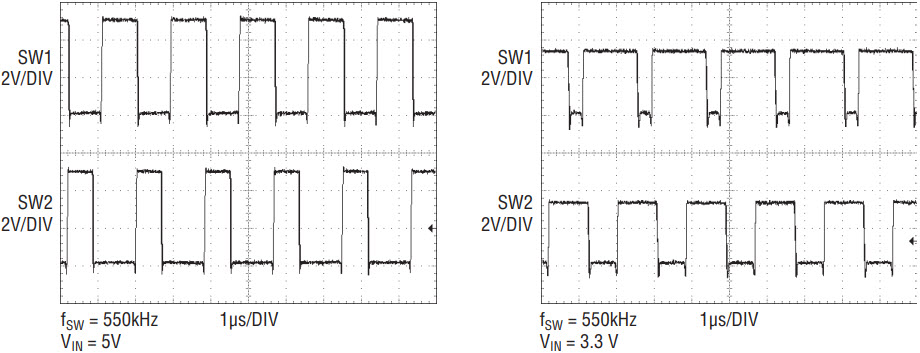Figure 4. SW node waveforms depicting out-of-phase (2-phase) operation.
