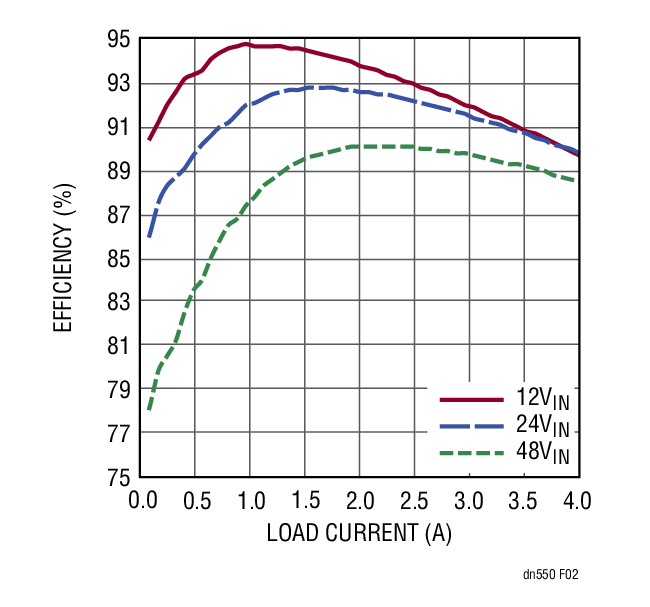 Figure 2. Efficiency vs Load and Input Voltage for Circuit in Figure 1.