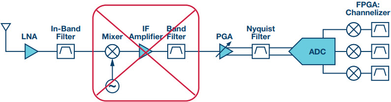 Figure 3. The undersampling technique can potentially remove a downconversion stage as the higher input frequency band is given directly to the RF sampling ADC.