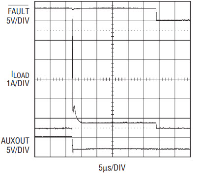 Figure 6. Fast acting current limit isolates short-circuit fault on 3.3V auxiliary output.