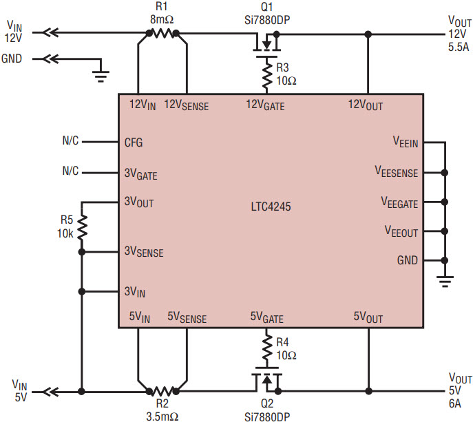 Figure 8. A 12V and 5V application. Floating the CFG pin disables the VEE undervoltage and power bad functions, allowing those pins to be tied to GND.