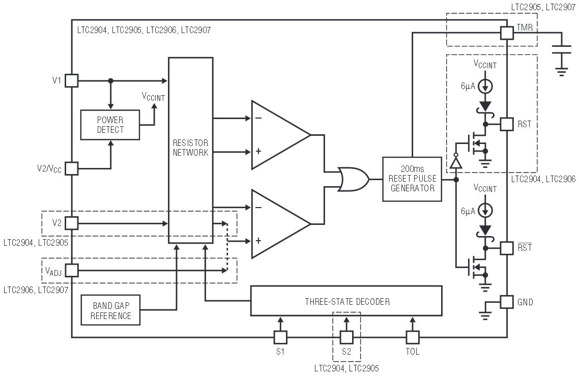 Figure 7. Block diagram representation of LTC2904, LTC2905, LTC2906 and LTC2907.