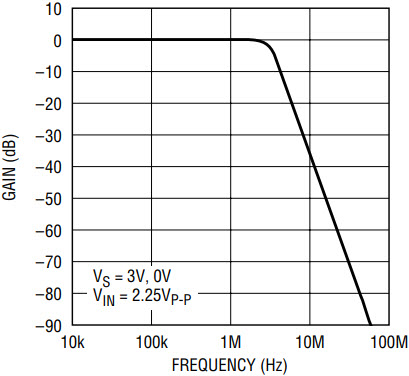 Figure 5. Single 3V supply, 4MHz, 4th order Butterworth filter.
