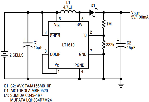 LT1610 Micropower Step-Up DC/DC Converter Runs at 1.7MHz