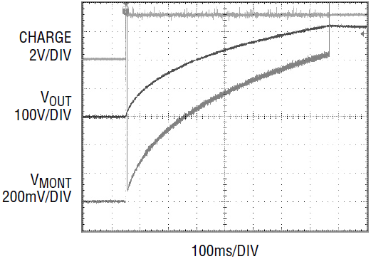 Figure 7 shows the measured output of VMONT. Because of the high speed nature of the circuit and the high dV/dt of the switch pin, there is a small amount of ripple on the VMONT output, which can be reduced by adding a 0.1µF capacitor to the output or by using the ADC to sample the VMONT output multiple times and taking the average.