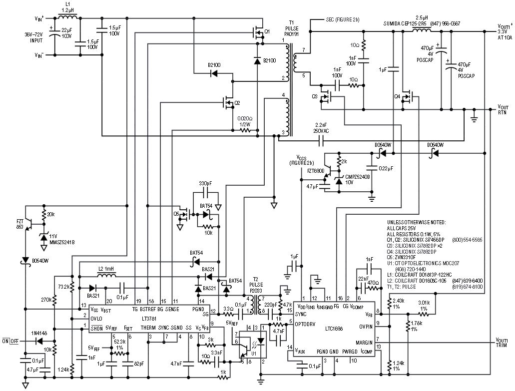 Figure 2a. 36V–72V DC to 3.3V/10A and 1.8V/10A dual output isolated power supply