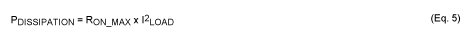 Si7485DP MOSFET (Siliconix製)は、VGS = -2.5V時に最大オン抵抗9mΩです。この20Vのpチャネルデバイスは、低入力電圧での動作で選択したものです。ワーストケースの定常損失は、次式で計算します。