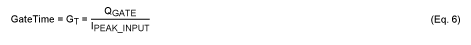 R1とR2を流れる電流は、電流検出アンプの公称出力電圧において、150nAより大きく、500µA未満でなければなりません。コンパレータの出力はシンク1mA、飽和電圧は600mV (max)です。ゲートプルアップ抵抗R3は、次式で計算します。