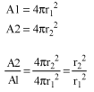 図A1. 放射距離r1とr2間の球A1とA2の表面積の比較
