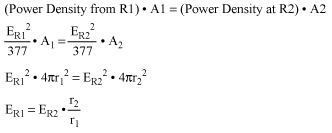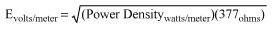 ただし、FCCはパート15の大部分の節では出力に関心がなく、むしろ電界強度に関心があります。出力は、インピーダンスが120πまたは377Ωの自由空間を進むため、オームの法則を使って電界を計算することができます。