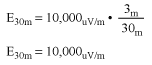 例えば、3mの距離で10,000µV/mに制限される場合は、30mの距離でそれに対応するレベルは次のようになります。
