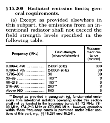 上記は、パート15.209からの抜粋です。この規則は、特にバンド端に関する仕様と要件へとさらに続きます。詳細については、リンクを参照してください。