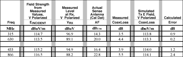 以下に示すのは、アンテナ測定に使用された実際の較正係数の図です。表1内の項目はすべて、試験家屋における50Ωでの測定値です。