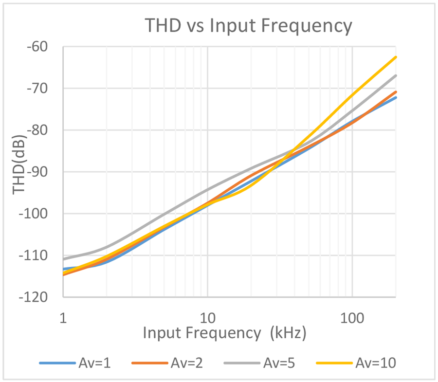 Figure 2. THD vs Input Frequency for the Circuit of Figure 1