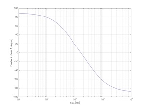 図6. R = 1kΩ、 C = 0.1uF時の伝達関数位相特性
