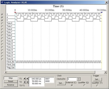 図2はNI Multisim(※)上で作ってみた3ビットのSynchronous(同期)UP Counterです。図3のように8ステートで元に戻っています。シミュレーション開始時にF/Fを初期化していませんので、ロジアナで(複数回トリガして)見てみると、そのときのF/Fの値が横軸0時間のときに出ています。本来であればF/Fはリセットしましょう(笑…カスタムICではサインオフができませんね)。