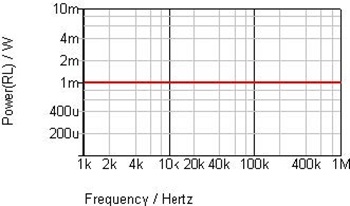 とはいえ、このADIsimPEでのモデル化では、この「校正」プロセスはありませんから、このように接続したときにRLに0dBm(1W)が発生するように、信号源の大きさを設定してあります(1V/√5)。