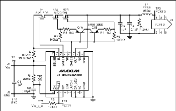 MAX5943AとMAX5944は、FireWireの仕様に合わせて7.5V~37Vの入力電圧で動作します。UVLO電圧は約6.5Vです。VINが6.5V未満でVONが1.24V未満である限り、外部MOSFETはオフのままです。VINでの過渡信号を除去するには、R1/C2のRC時間遅延部を経由してVONをVINに接続します。UVLOが6.5Vを上回ることが要求される場合は、抵抗器をC2の両端に配置することで、所望のターンオン電圧を生成することができます。VONのスレッショルドは1.24Vです。