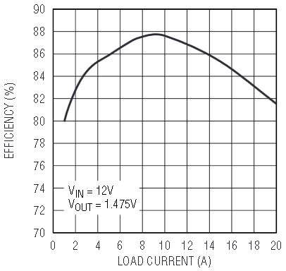 Figure 2. Better than 80% efficiency is achieved over a 1A–20A load range.