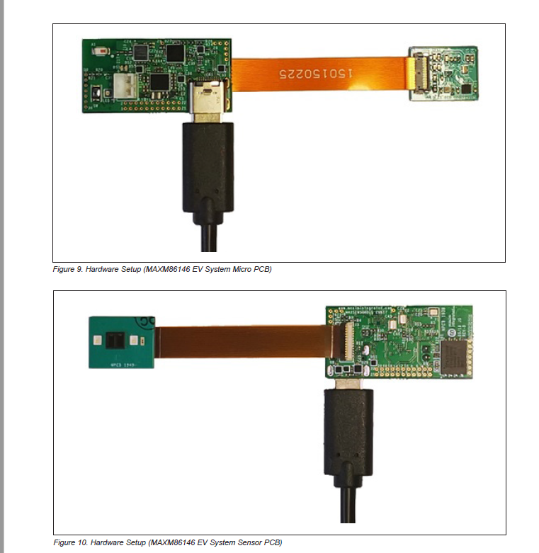 - MAX32664 A Version: With the MAX30101/2 optical measurement module, this version measures HR, HRV, and SpO2 from the fingertip.